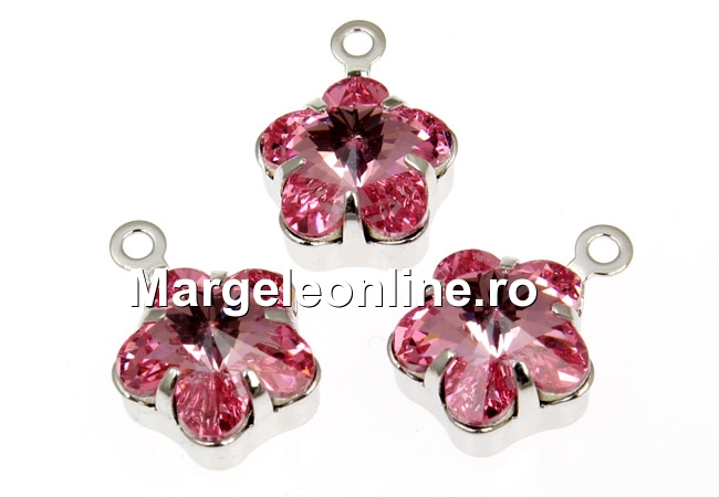Swarovski, rhodium-plated pendant, flower, light rose, 13mm - x2