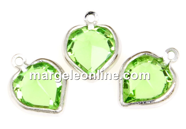 Swarovski, rhodium-plated pendant, heart, peridot, 15mm - x2