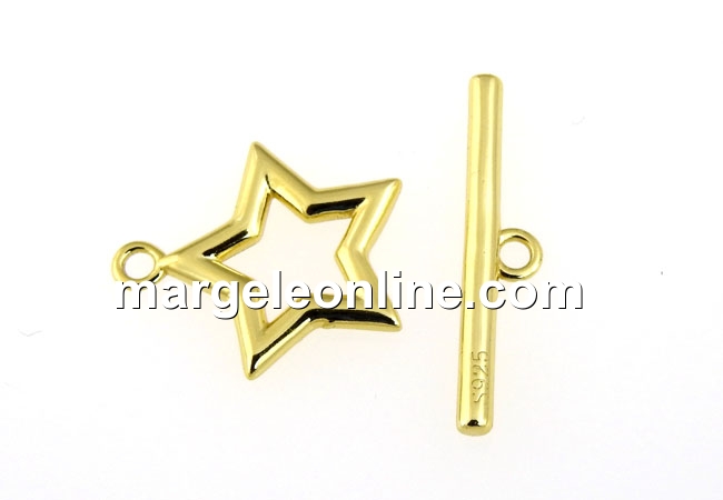 Toggle lock, material: 925 silver plated with gold, marked, size: 15x13mm and stick: 20mm. The price is for one piece.
