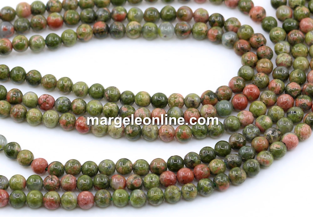 Unakite beads, shape: round, size: 3mm, strand length: 41cm. The price is for one strand without a clasp.
