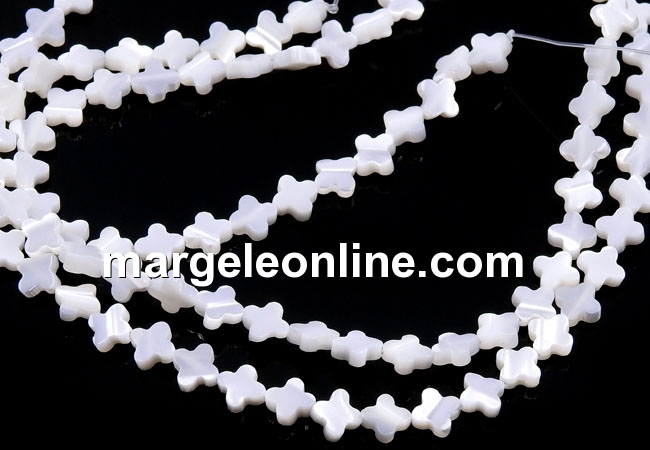 White natural mother-of-pearl beads, clover, 6x6mm