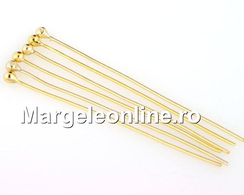 Ace cu bila: accesorii bijuterii argint 925 placat cu aur, dimensiune: 25x0.55mm, diametru bila: 1.85mm. Pretul se refera la 10 bucati.