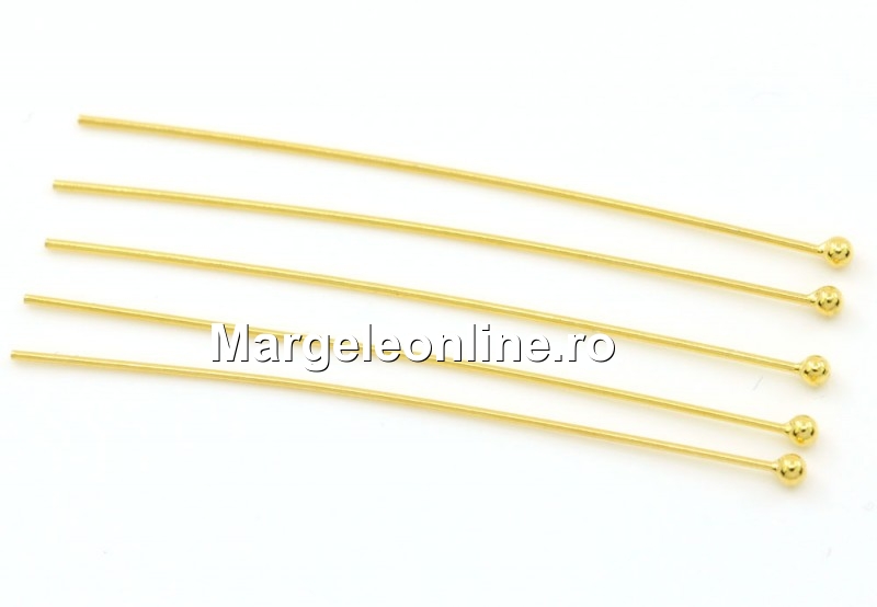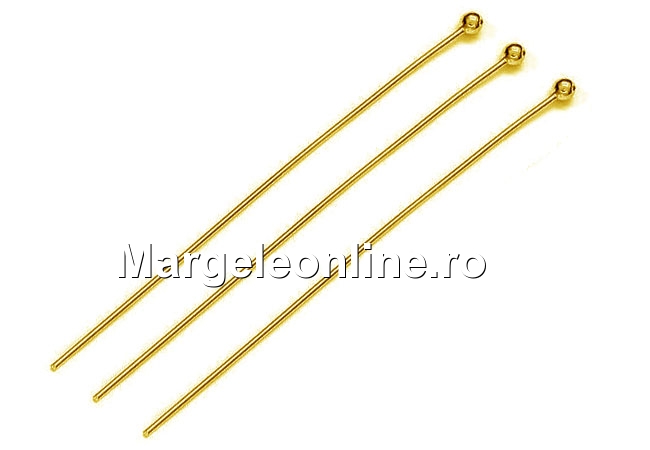 Ace cu bila, argint 925 placat cu aur, dimensiune: 40x0.5mm, bila: 1.6mm. Pretul este pentru 5 bucati.