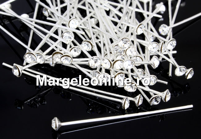 Ace cu cap cristal Swarovski, dimensiune cristal 3.5mm, argint 925, dimensiune totala ac: 40x0.8mm. Pretul este pentru 1 bucata.