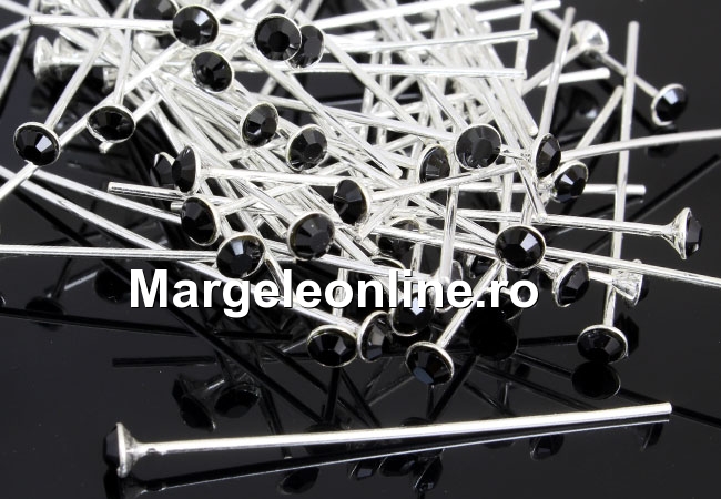 Ace cu cap cristal Swarovski, dimensiune cristal 3.5mm, argint 925, dimensiune totala ac: 40x0.8mm. Pretul este pentru 1 bucata.