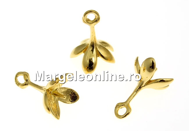 Sistem prindere pandantiv argint 925 placat cu aur, model cupa floare, marcat, dimensiune 13x10mm, pentru perle sau margele de 10mm cu un orificiu. Pretul se refera la 1 bucata.