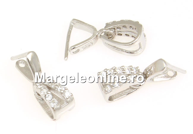 Sistem prindere pandantiv argint 925 placat cu rodiu, model picatura, marcat, dimensiune 14mm, prevazut cristale Zirconia. Pretul se refera la 1 bucata.