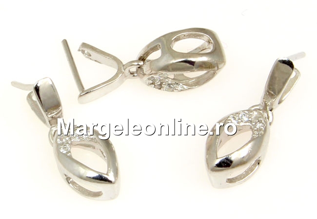 Sistem prindere pandantiv argint 925 placat cu rodiu, model picatura, marcat, dimensiune 15mm, prevazut cristale Zirconia. Pretul se refera la 1 bucata.