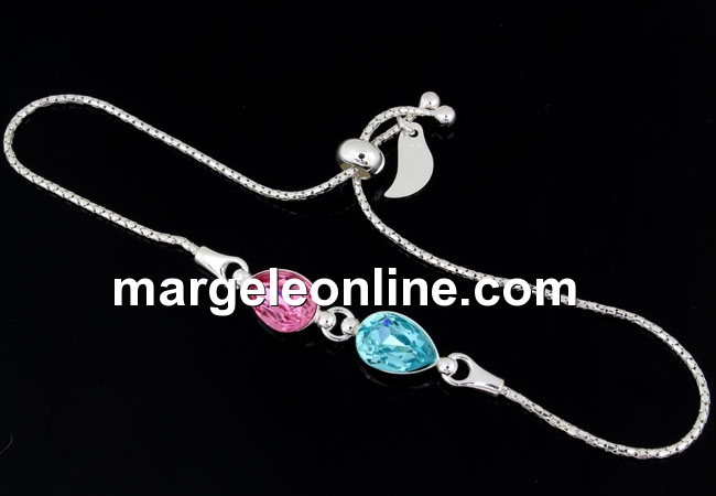 Baza bratara reglabila pentru 2 fancy picatura Swarovski 4320 de 10x7mm , material: accesorii bijuterii argint 925. Pretul se refera la 1 bucata. Produsul din imagine este cu titlu de prezentare si poate fi achizitionat din categoria Fancy picatura Swarovski.