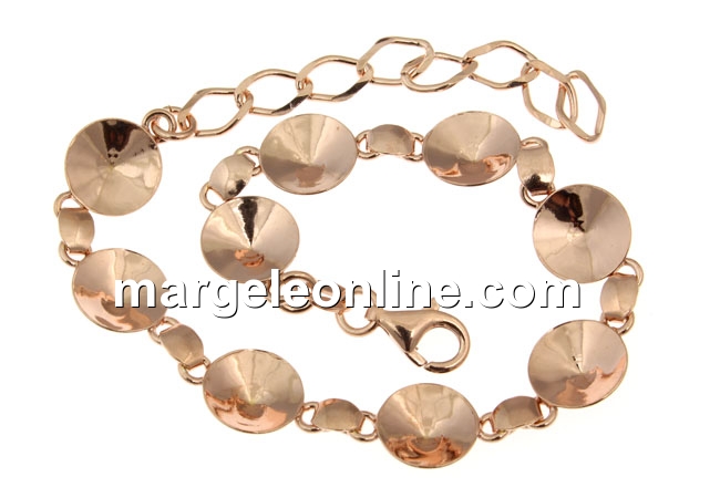 Baza pentru bratara, cu 9 linkuri pentru rivoli de 10mm, lungime: 17.5cm, prevazuta cu lantisor extensie 5.5cm, material: accesorii bijuterii argint 925 placat cu aur roz , marcat. Pretul este pentru 1 bucata.