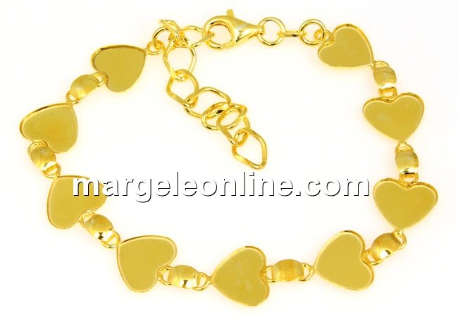 Baza pentru bratara, cu 9 linkuri pentru cabochon inima de 10mm, lungime: 15.5cm, prevazuta cu lantisor extensie 4.5cm, material: accesorii bijuterii argint 925 placat cu aur , marcata. Pretul este pentru 1 bucata.