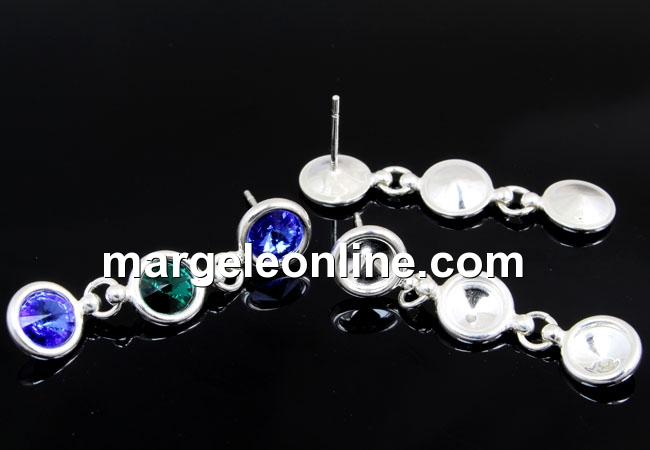 Baza cercei pentru 3 rivoli de 6mm, argint 925, marcat, dimensine totala 38.5mm. Pretul este pentru 1 pereche. Produsul din imagine este cu titlu de prezentare si poate fi achizitionat din categoria Swarovski rivoli.
