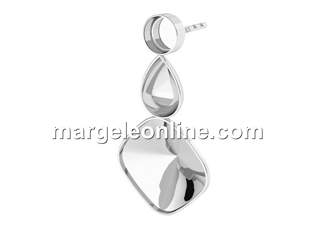 Baza cercei pentru Swarovski fancy square 4470 de 10mm, fancy picatura 4320 de 8x6mm si baza pentru ceralun de 4.2mm , material: accesorii bijuterii argint 925, marcat, dimensiune totala: 25x13.5mm. Pretul se refera la 1 pereche.