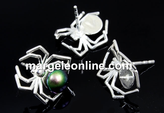 Baza cercei paianjen pentru cabochon perla Swarovski de 6mm, argint 925 marcat, dimensiune 13.5mm, lungime tija 12.5mm. Pretul este pentru 1 pereche.
