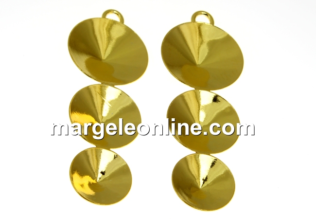 Baza pandantiv sau cercei, pentru 1 rivoli de 14mm, 1 rivoli de 12mm si 1 rivoli de 10mm , argint 925 placat cu aur, dimensiune totala: 39mm. Pretul este pentru 1 bucata.