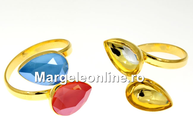 Baza inel reglabila pentru 2 fancy picatura Swarovski 4320 de 14x10mm, material: accesorii bijuterii argint 925 placat cu aur , marcat. Pretul este pentru 1 bucata. Produsul din imagine este cu titlu de prezentare si poate fi achizitionat din categoria Swarovski fancy picatura.