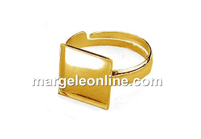 Baza inel ag925 pl cu aur, cabochon patrat 10mm, reglabil - x1
