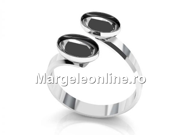 Baza inel ag925, pt. 2 fancy rivoli 4122 de 8x6mm, reglabil - x1