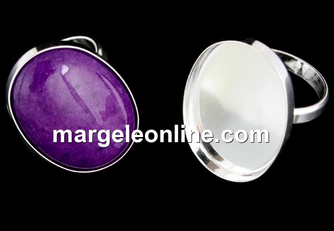 Baza inel, accesorii bijuterii argint 925, marcat, pentru cabochon 25x18mm, marime 18. Pretul este pentru 1 bucata. Produsul din imagine este cu titlu de prezentare si poate fi achizitionat din categoria cabochoane.