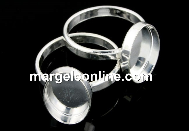 Baza inel cu interior de 17.2mm, material: accesorii bijuterii argint 925, marcat, cu platou pentru cabochon de 14x10mm. Pretul se refera la 1 bucata.