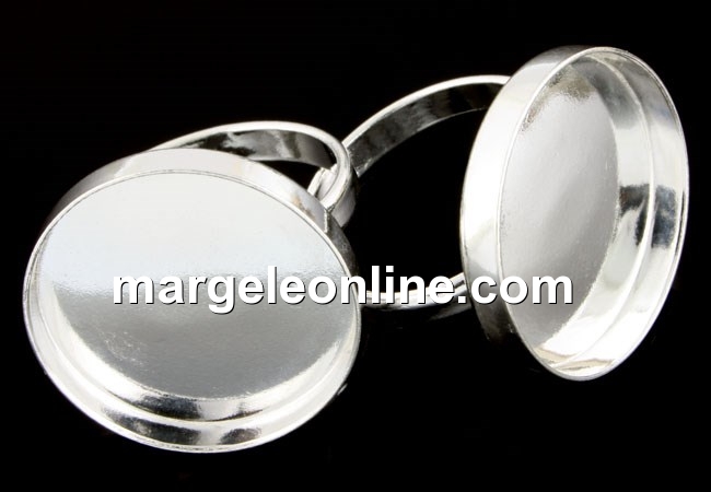 Baza inel cu interior de 17.2mm, material: accesorii bijuterii argint 925, marcat, cu platou pentru cabochon de 18mm. Pretul se refera la 1 bucata.