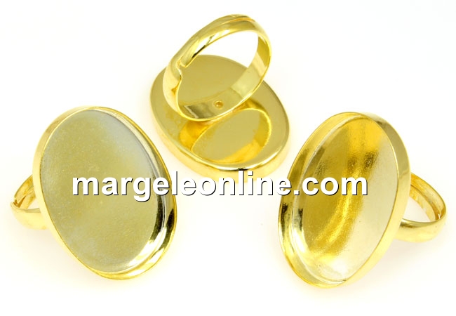 Baza inel, accesorii bijuterii argint 925 placat cu aur, marcat, pentru cabochon 25x18mm, reglabil. Pretul este pentru 1 bucata.