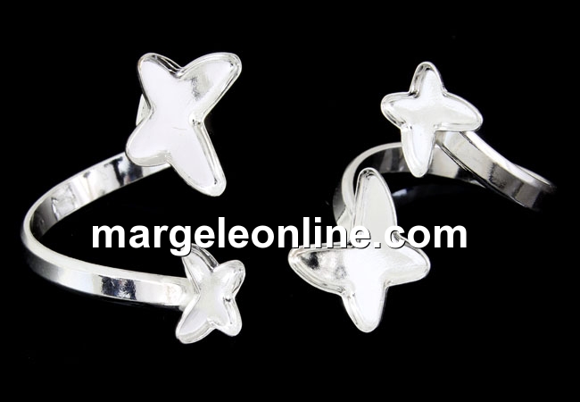 Baza inel cu bordura pentru 2 cabochoane fluture Swarovski 2854 de 8-12mm, interior reglabil, material: accesorii bijuterii argint 925 , marcat. Pretul este pentru 1 bucata.