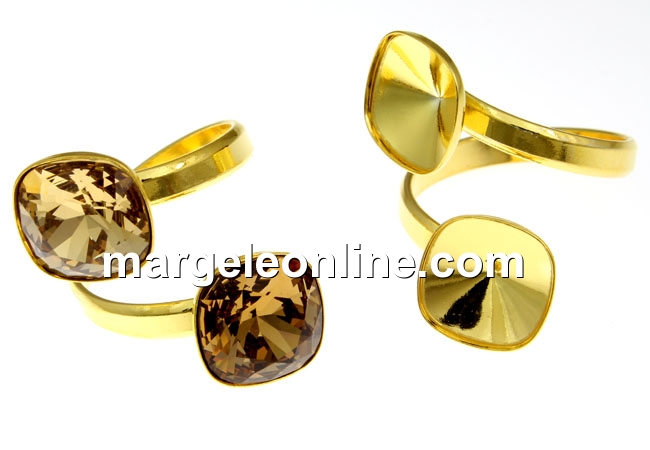 Baza inel cu bordura pentru 2 fancy rivoli Swarovski 4470 de 10mm, interior reglabil, material: accesorii bijuterii argint 925 placat cu aur, marcat. Pretul este pentru 1 bucata. Produsul din imagine este cu titlu de prezentare si poate fi achizitionat din categoria Fancy square Swarovski.