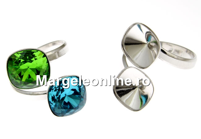 Baza inel cu bordura pentru 2 fancy rivoli Swarovski 4470 de 10mm, interior reglabil, material: accesorii bijuterii argint 925 placat cu rodiu, marcat. Pretul este pentru 1 bucata. Produsul din imagine este cu titlu de prezentare si poate fi achizitionat din categoria Fancy square Swarovski.