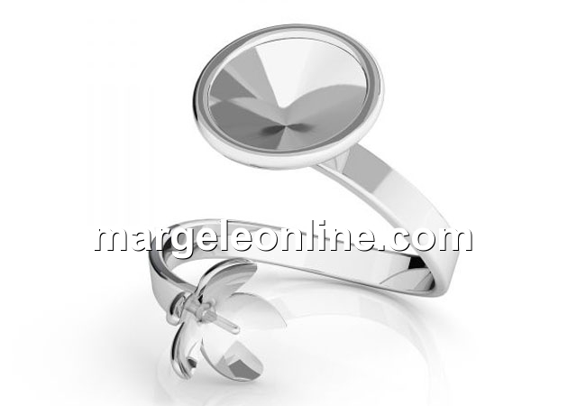 Inel reglabil pentru Swarovski rivoli SS39- 8mm si perla de 10mm cu un orificiu , accesorii bijuterii argint 925, marcat. Pretul este pentru 1 bucata.