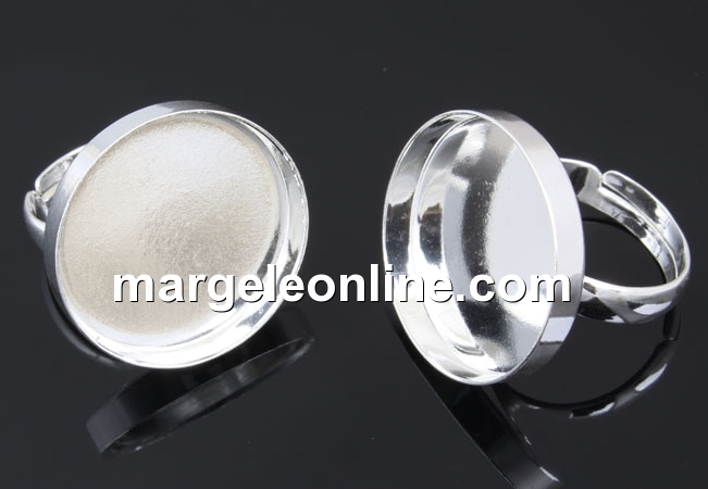 Baza inel reglabil, pentru cabochon 20mm, material: accesorii bijuterii argint 925 placat cu rodiu, marcat, interior standard: 16.1mm. Pretul este pentru 1 bucata.