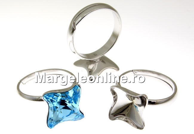 Baza inel reglabil, patrat, ag 925 rodiat, Swarovski 4485 de 10.5mm - x1