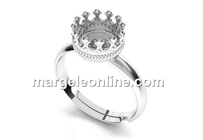 Baza inel reglabil pentru ceralun si cristale : accesorii bijuterii argint 925, marcat, dimensiune totala cupa : 8.5mm, interior 7mm, interior standard inel 16mm. Pretul se refera la 1 bucata