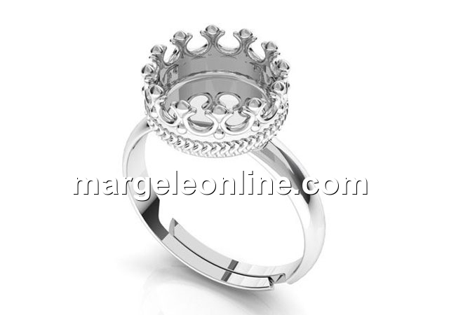 Baza inel reglabil pentru ceralun si cristale : accesorii bijuterii argint 925, marcat, dimensiune totala cupa : 11mm, interior 9mm, interior standard inel 15.6mm. Pretul se refera la 1 bucata