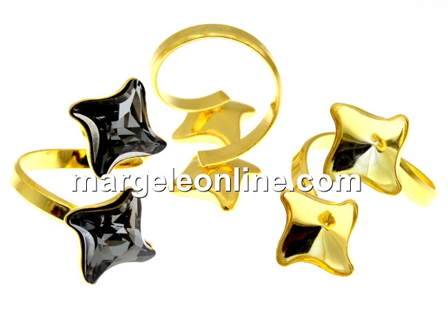 Baza inel reglabil cu bordura pentru 2 fancy Swarovski 4485 de 10.5mm, interior reglabil, material: accesorii bijuterii argint 925 placat cu aur , marcat. Pretul este pentru 1 bucata. Produsul din imagine este cu titlu de prezentare si poate fi achizitionat din categoria Fancy twister Swarovski.