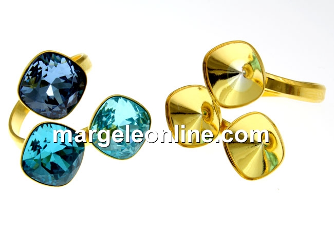 Baza inel cu bordura pentru 3 fancy rivoli Swarovski 4470 de 10mm, interior reglabil, material: accesorii bijuterii argint 925 placat cu aur, marcat. Pretul este pentru 1 bucata. Produsul din imagine este cu titlu de prezentare si poate fi achizitionat din categoria Fancy square Swarovski.