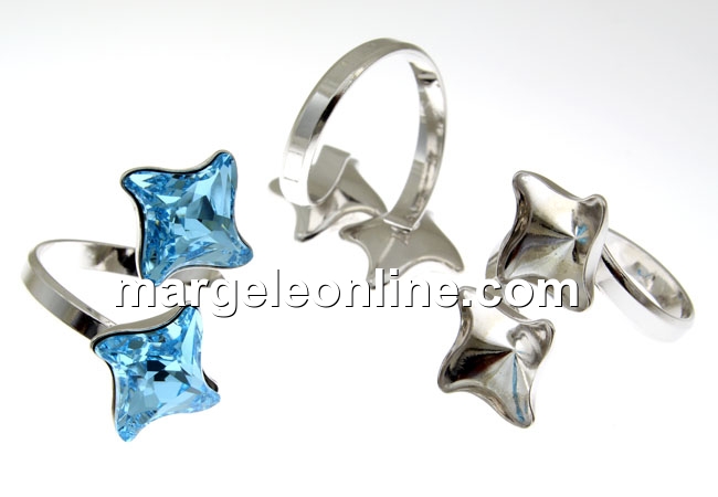 Baza inel romb argint 925 rodiat, pt 2 Swarovski 4485 de 10.5mm - x1