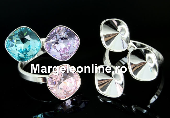 Baza inel cu bordura pentru 3 fancy rivoli Swarovski 4470 de 10mm, interior reglabil, material: accesorii bijuterii argint 925 , marcat. Pretul este pentru 1 bucata. Produsul din imagine este cu titlu de prezentare si poate fi achizitionat din categoria Fancy square Swarovski.