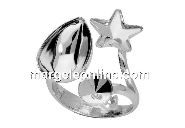 Baza inel reglabila, accesorii bijuterii argint 925, marcat, pentru fancy picatura 4320 de14x10mm, fancy star 4745 de 10mm si rivoli 1122 de 6mm. Pretul este pentru 1 bucata.