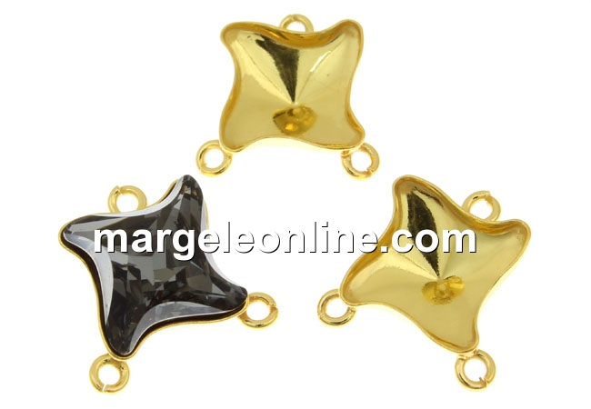 Baza link argint 925 aurit, patrat pt Swarovski 4485 de 10.5mm - x1