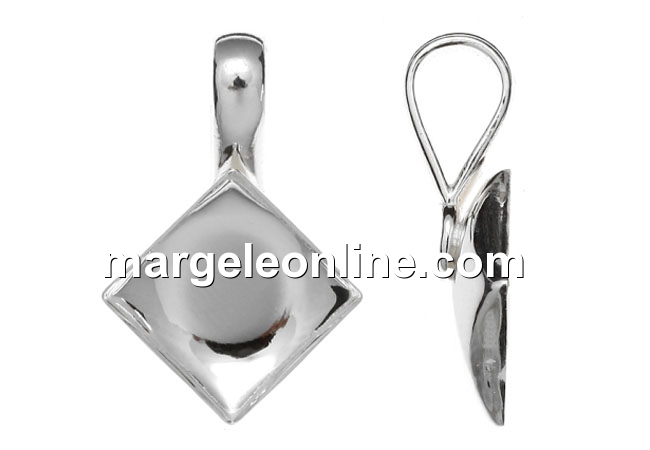 Baza pandantiv pentru cabochon Swarovski 2493 patrat de 10mm , material: accesorii bijuterii argint 925, marcat, dimensiune: 22x14.5mm. Pretul se refera la 1 bucata.