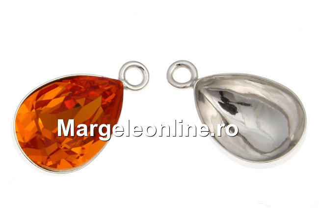 Baza pandantiv pentru fancy picatura Swarovski 14x10mm , material: accesorii bijuterii argint 925 placat cu rodiu, dimensiune totala: 18x10.5mm. Pretul se refera la 1 bucata. Produsul din imagine este cu titlu de prezentare si poate fi achizitionat din categoria Fancy picatura Swarovski.