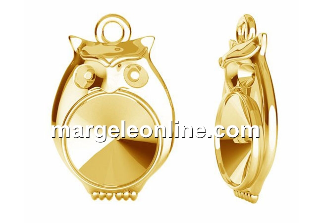 Baza pandantiv ag925 pl cu aur, bufnita, pentru rivoli 6mm - x1