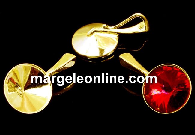 Baza pandantiv ag925 pl cu aur cu bordura, rivoli 14mm - x1