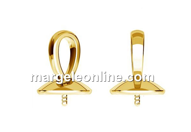 Baza pandantiv pentru perla 5818 de 10mm cu un orificiu, argint 925 placat cu aur, marcat, dimensiune totala: 10x8mm. Pretul este pentru 1 bucata.