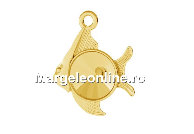 Baza pandantiv pentru rivoli de 8mm , material: accesorii bijuterii argint 925 placat cu aur, marcat, dimensiune totala: 18x15mm. Pretul se refera la 1 bucata. Produsul din imagine este cu titlu de prezentare si poate fi achizitionat din categoria Swarovski rivoli sau fancy rivoli.