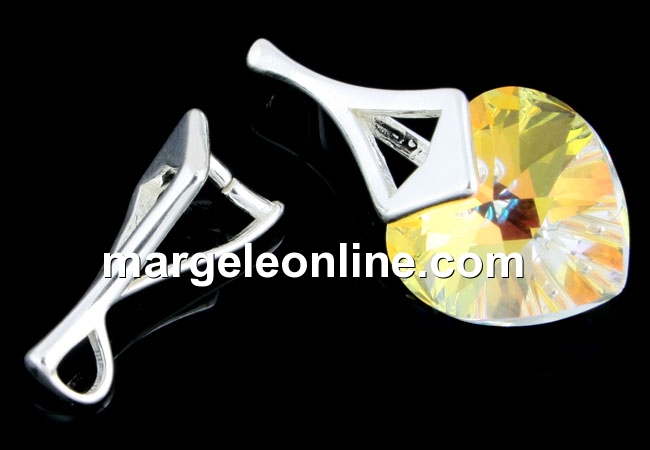 Baza pandantiv , material: accesorii bijuterii argint 925, marcat, dimensiune: 19x9x8mm. Pretul este pentru 1 bucata. Produsul din imagine este cu titlu de prezentare si poate fi achizitionat din categoria Swarovski elements.