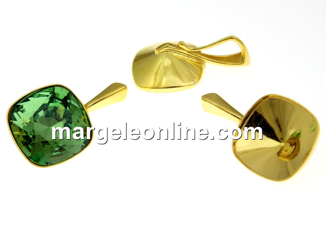 Baza pandantiv argint 925 aurit patrat pt Swarovski 4470 si 4461 de 12mm - x1