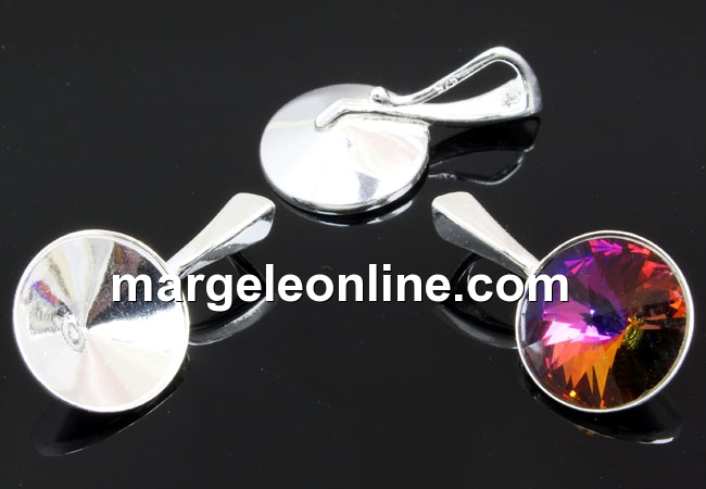 Baza pandantiv pentru rivoli de 6mm , material: accesorii bijuterii argint 925, dimensiune totala: 13x6.5mm. Pretul se refera la 1 bucata. Produsul din imagine este cu titlu de prezentare si poate fi achizitionat din categoria Swarovski rivoli.