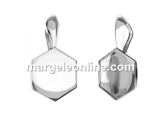 Baza pandantiv pentru Swarovski hexagon 4683 de 10mm , material: accesorii bijuterii argint 925, marcat, dimensiune totala: 19.5x11mm. Pretul se refera la 1 bucata.